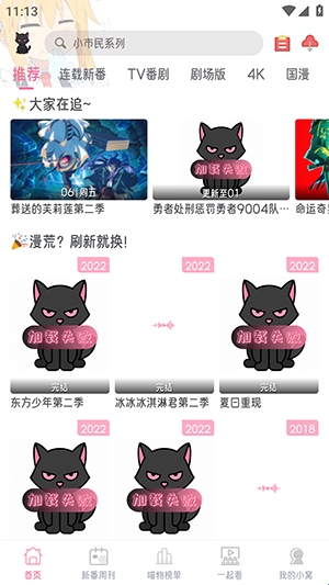 1、进入软件后即可直接使用,首页更新了多种类型的动漫番剧板块。