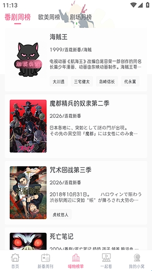 4、点击排行榜选项可以查看热门动漫番剧。