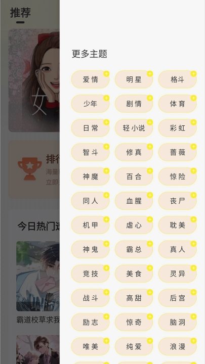 用户可以通过分类标签快速找到想要阅读的漫画类型,如热血、恋爱、科幻、魔幻等。