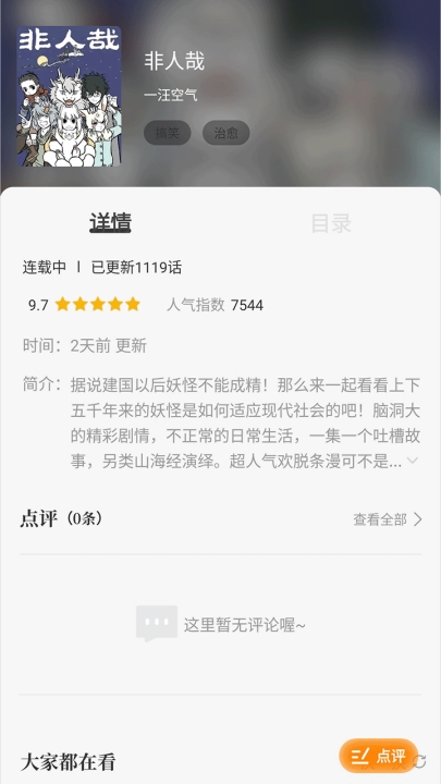 3、点击漫画封面进入详情页面,在此页面可进行阅读、下载等操作。