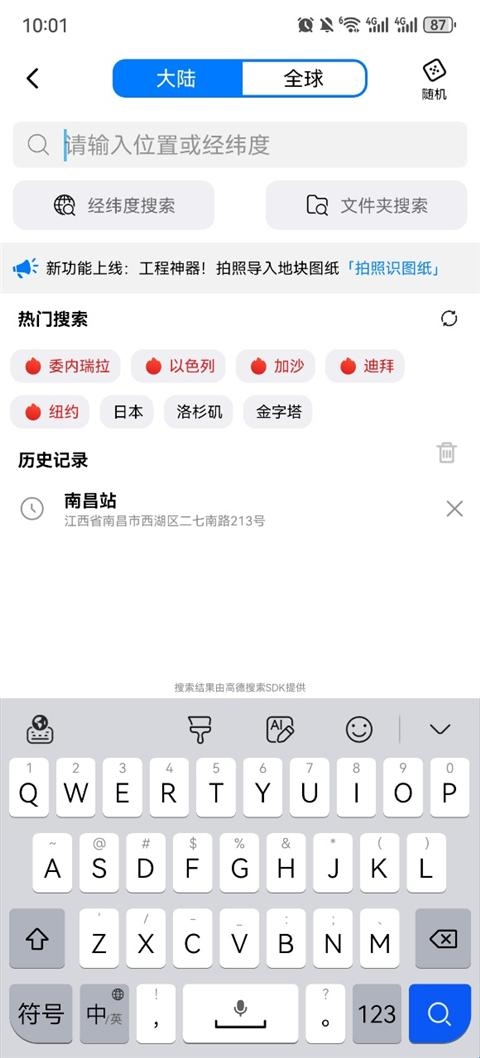 1、进入APP后,用户可通过搜索位置以及经纬度来查看位置;