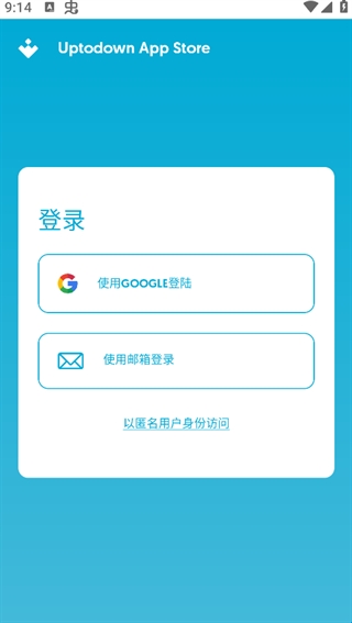 1、打开Uptodown,可选择 Google 登录、邮箱登录或直接以匿名用户身份访问。