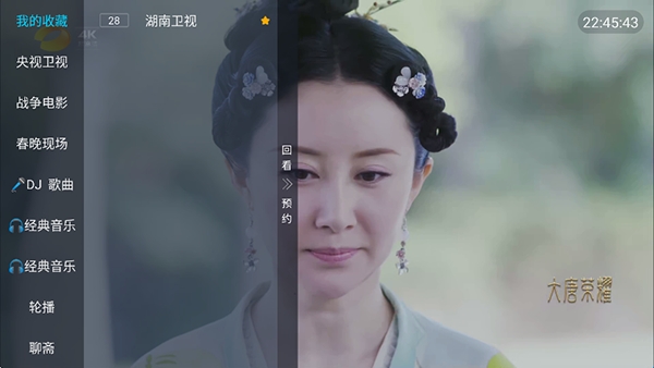2、点击左侧屏幕或者使用遥控器按菜单选项唤起电视频道列表。