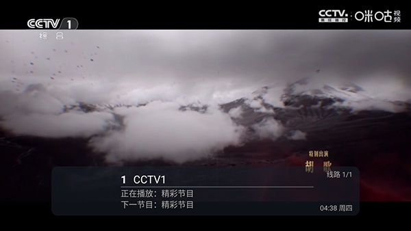 2、点击左侧屏幕或者使用遥控器按菜单选项可以唤起电视频道列表。