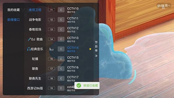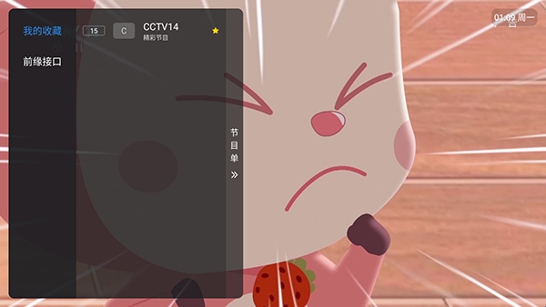 2、点击左侧屏幕或者使用遥控器按菜单选项唤起电视频道列表。