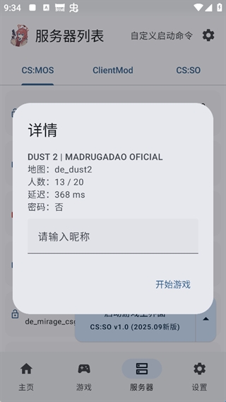 4、你也可以在服务器列表中任意选择一个服务器,点击进入后输入昵称,再点击【开始游戏】,即可直接开玩。