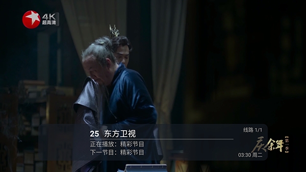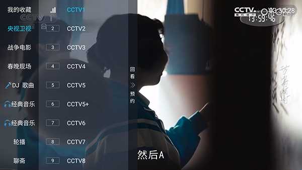 2、手机端用户直接点两次左边屏幕即可显示频道列表,电视端用户使用遥控器按菜单选项。