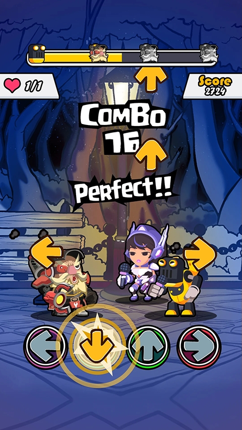 玩家操作角色在确切的节拍上点击确切的箭头,游戏的操作相对来说非常的简单,但是随着游戏的进度越快,操作起来会手忙脚乱。