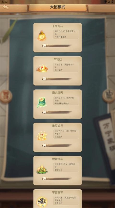 1、涵盖普通大师炼狱等多难度棋局,新增大招版实战玩法,棋子可触发独特技能扭转战局,满足不同策略需求。