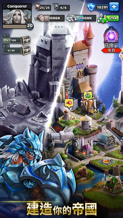 2、角色成长,装备搭配,无尽组合策略,挑战各种史诗巨兽,守护帝国安宁。