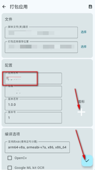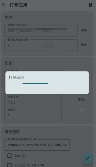 2、确定好应用的名称,图标,点勾选打包按钮开始打包。