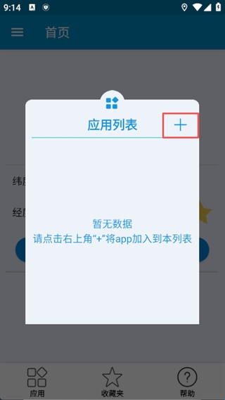 2、在弹出的应用列表点击右上角的【+】号添加应用