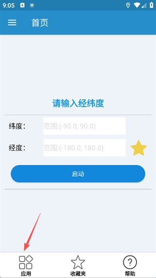 4、添加成功后,返回首页输入【维度、经度】点击启动