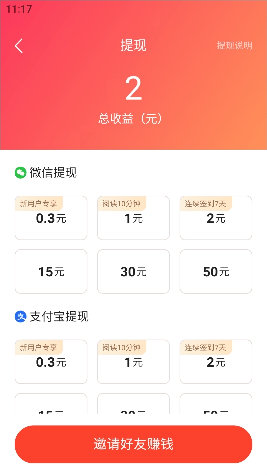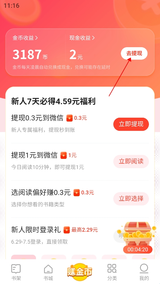 通过丰富的福利任务赚取金币,金币可以快速提现!新人福利、每日签到、阅读小说可以快速获取大量金币!看小说赚零花,金币福利等你来拿!