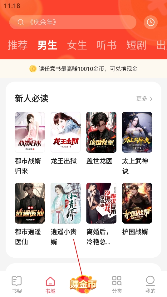1、打开速读免费小说app,点击下方的“赚金币”选项