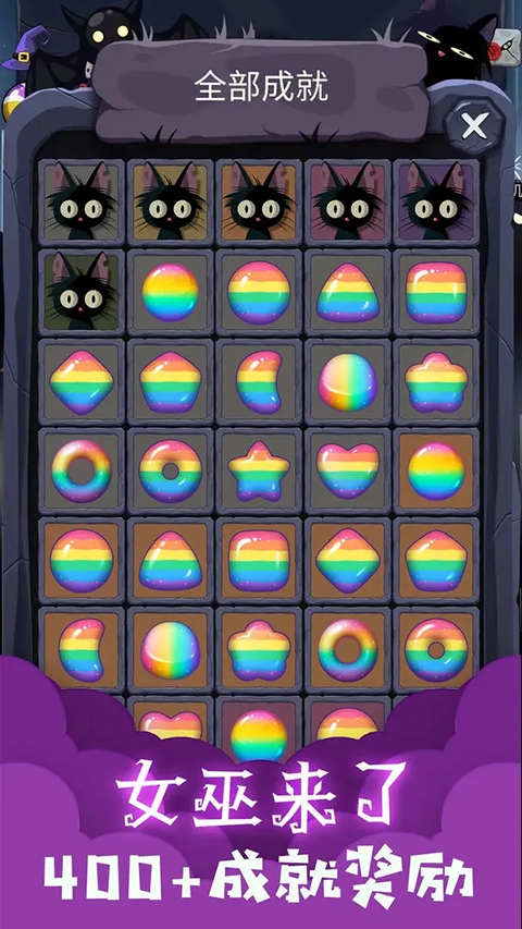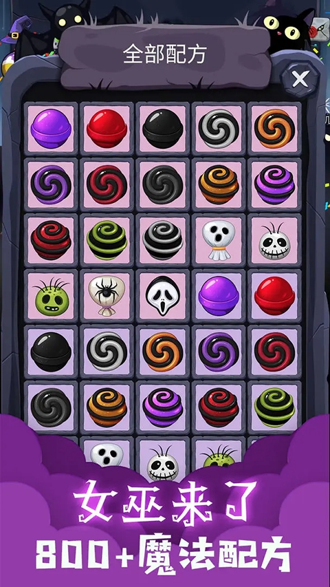 女巫来了是一款放置类消除游戏,在热闹的万圣节背景下,按照不给糖就捣蛋的节日传统,玩家需要消除更多的方块来获得糖果,用来赶走这群捣蛋的小朋友,游戏玩法十分简单,新手也能轻松通关,快来体验当女巫的乐趣吧。