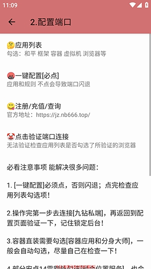 1、需要一键配置,操作失败将导致崩溃。完成后,注意检查应用程序列表中的选定状态;