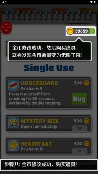 9、即可获取自己修改的金币,用此购买道具