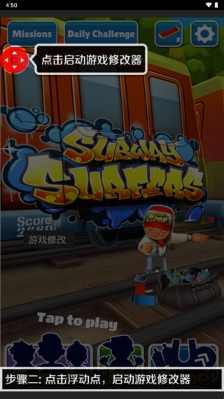 3、进入游戏(小编以地铁跑酷为例子),点击图标,即可启动游戏修改器
