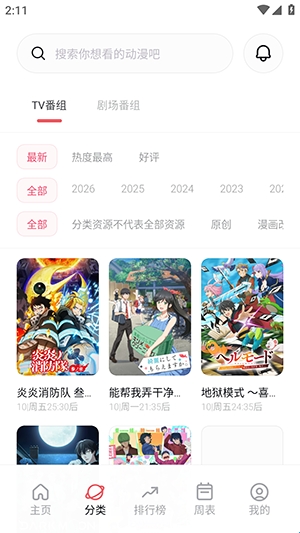 2、点击分类选项可以筛选感兴趣的动漫番剧。
