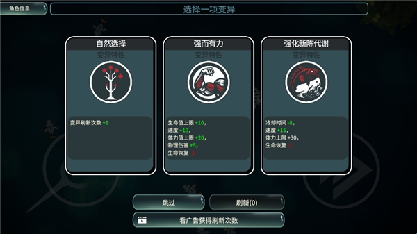 5、玩家可在三项变异中选择一项。