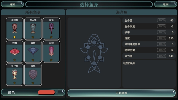 1、进入游戏关卡内,首先需要选择我们的鱼身。