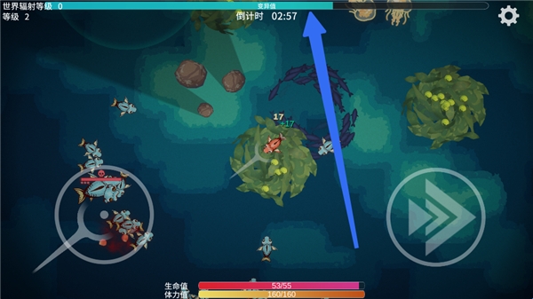 2、在游戏中,玩家将扮演一只初出茅庐的小生物,目标是通过吸收辐射、吞噬竞争对手,逐步进化成为深海中的巨无霸。
