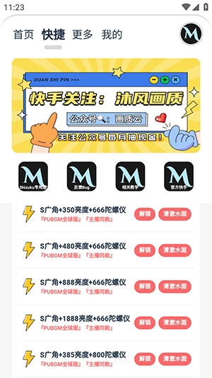 2、点击快捷板块,这里拥有多种广角设置,解锁任务后即可直接使用。