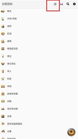 2、点击画面顶端的标签可直接进入文明百科的各个主要章节。