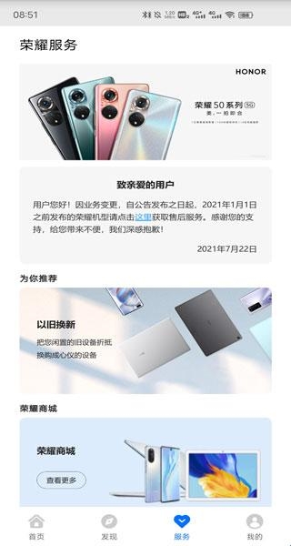 3、在服务栏,软件为用户提供了很多荣耀产品的售后服务;
