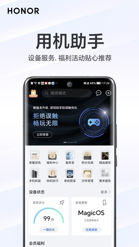 丰富权益,为你提供专属会员权益、设备权益及新机礼包等,更有优惠积分享不停。