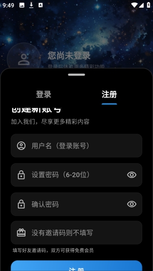 1、安装软件进入首页会弹出登录页面,如果你关了也可以点击右下角的个人账户。