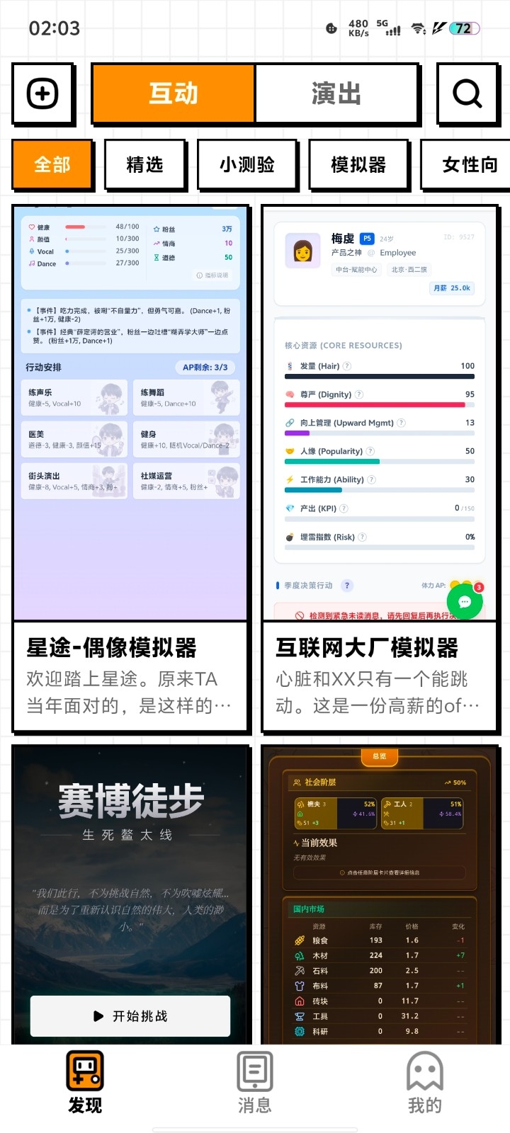 4、从AI模拟器、小测验到趣味玩法、互动漫画,砖块构建了一个多元化的内容矩阵。