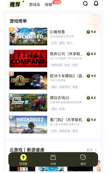 荒野大镖客2、漫威蜘蛛侠、FIFA23、双人成行、欧洲卡车模拟器2、Steam超多人气新游即时上新,让您畅享云游戏体验。