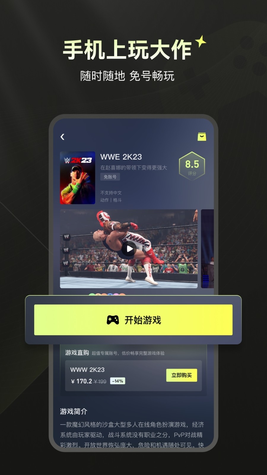 随时随地为您提供海量大作云体验,游戏免下载不安装、一键启动。