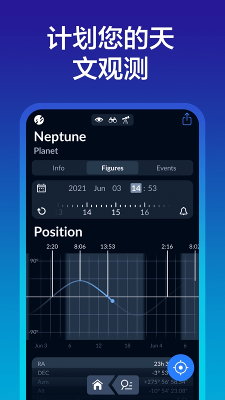 在任何时间和日期设置天文事件提醒,以免错过您感兴趣的日食、满月,恒星与行星配置等。