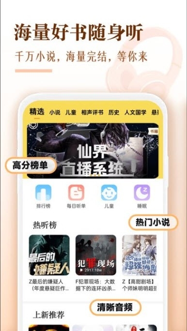 1、海量好书随身听:千万小时,海量完结,等你来。