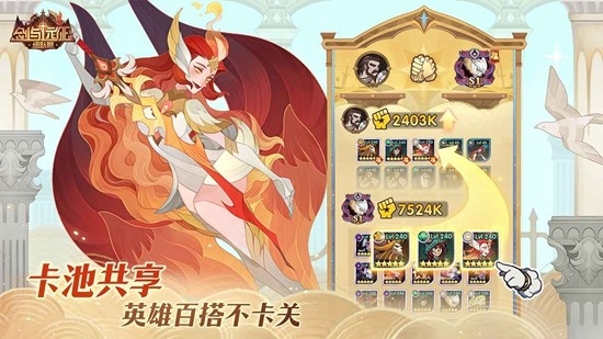 剑与远征是一款火遍全网的卡牌放置游戏,游戏内包含上百中英雄可供玩家选择,还有多种卡牌可以在游戏中抽取,还包含了剧情内容,每一关都有不同的剧情与挑战,玩家可以根据挑战关卡进行自由组合阵容,玩法多样,十分有趣,更多游戏内容欢迎下载了解。