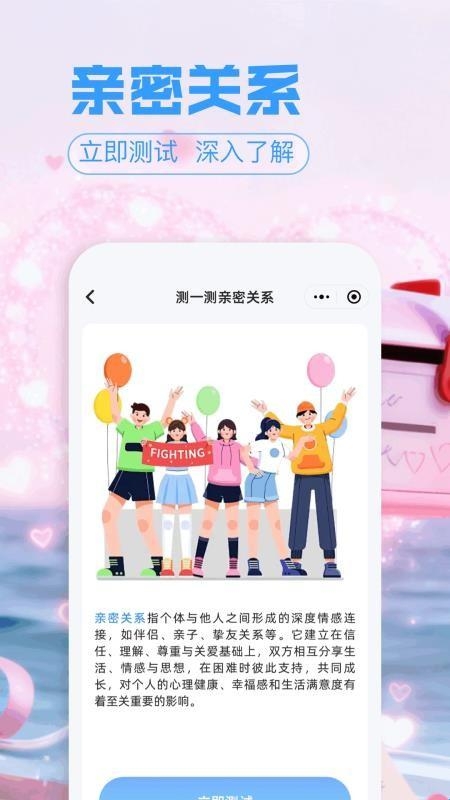 可一键开启亲密度测试,知道亲密度数据,方便用户日常聊天互动能把握氛围;