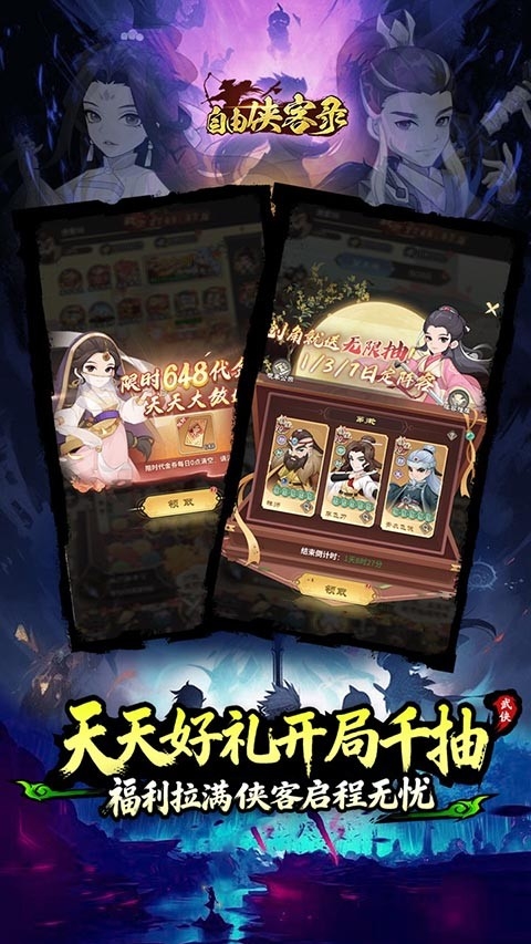游戏内送出的无限抽卡机会,让你轻松招募到各式传奇侠客,无论是声名显赫的武林盟主,还是隐居深山的神秘高手,都有机会成为你的得力助手。每一次抽卡都是一场心跳加速的冒险,每一次点击都可能带来意想不到的惊喜。在这里,无限抽卡,全民欧皇,强力阵容由你自由搭配,让你的武侠梦从这里起航!