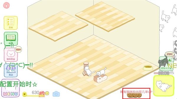 4、收集稀有猫,出现的猫咪品种会受到道具的影响哦;