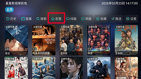1、软件自带影视源接口配置,打开软件后需要先点击【配置】选项。