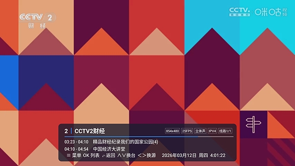 2、点击左侧屏幕或者使用遥控器按菜单选项唤起电视频道列表。