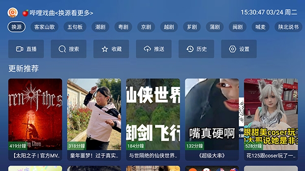 1、软件自带戏曲源接口配置,点击左上角可以进行切换。