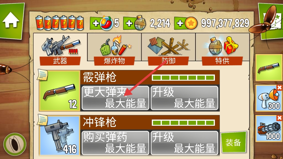 2、这里可以购买和升级武器。