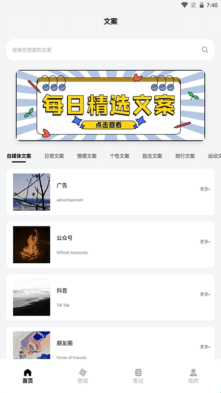 4、文案复制使用:直接复制喜欢的文案,快速应用于社交平台。