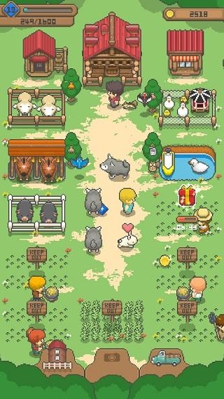 迷你像素牧场是一款像素风格的农场经营游戏,游戏操作起来非常简单,玩家在游戏中拥有一个属于自己的牧场,可以养殖许多不同的动物,饲养家禽,生产加工农产品,把这些农产品销售出去,赚取更多的金钱,升级自己的牧场。