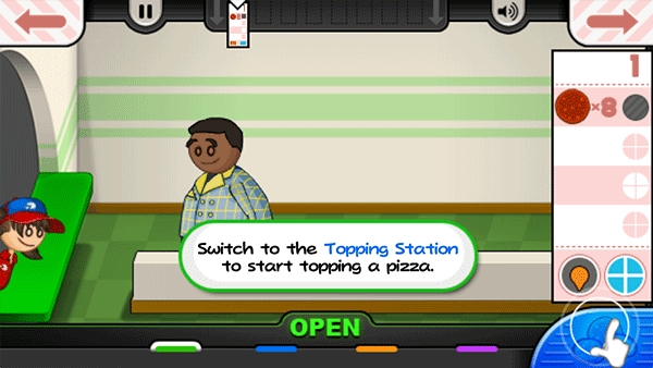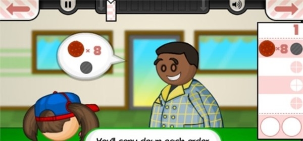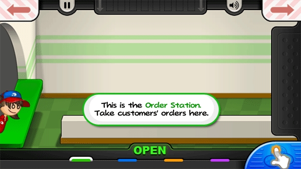 7、完成教学关卡后正式进入营业阶段,点击“Take Order”记录顾客所需披萨类型与特殊要求;