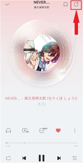 1、在歌曲的播放页面点击右上角的分享按钮。