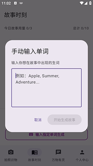 3、在弹窗当中输入提示词,点击生成故事。